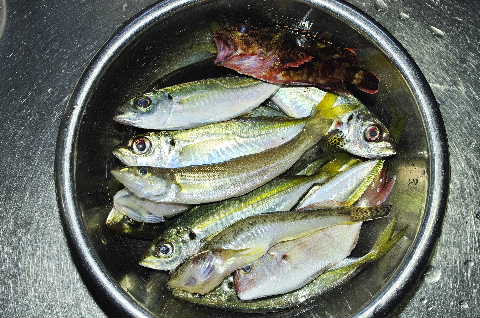 魚は全て3枚に下しアジは南蛮漬け、他は豆腐白菜等と魚好き風にした。美味。でも都志は遠い!。